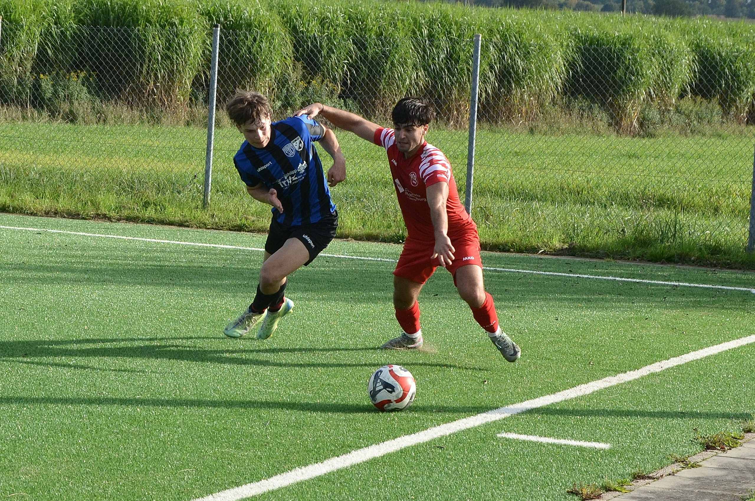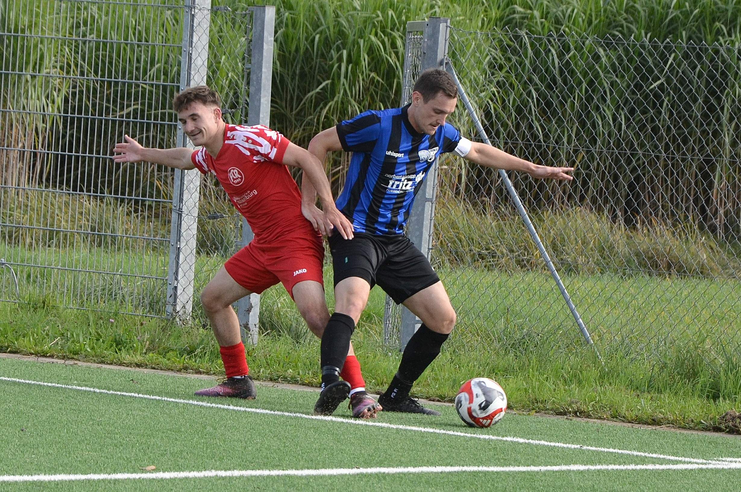 In der Folgezeit hatten wir ein starkes Umschaltspiel in die Offensive, konnten unsere Angriffe jedoch nicht konsequent zu Ende bringen. In der 41. Minute brachte uns dann ein Standard auf die Siegerstraße: Nach einem Freistoß von Leon Haug in den Strafraum gewann Luis Branz das Kopfballduell gegen Gegenspieler und Torwart. Der Ball sprang vor der Torlinie auf, und Simon Ott staubte zu seinem ersten Saisontreffer ab. Mit dieser verdienten 2:1-Führung ging es in die Pause.