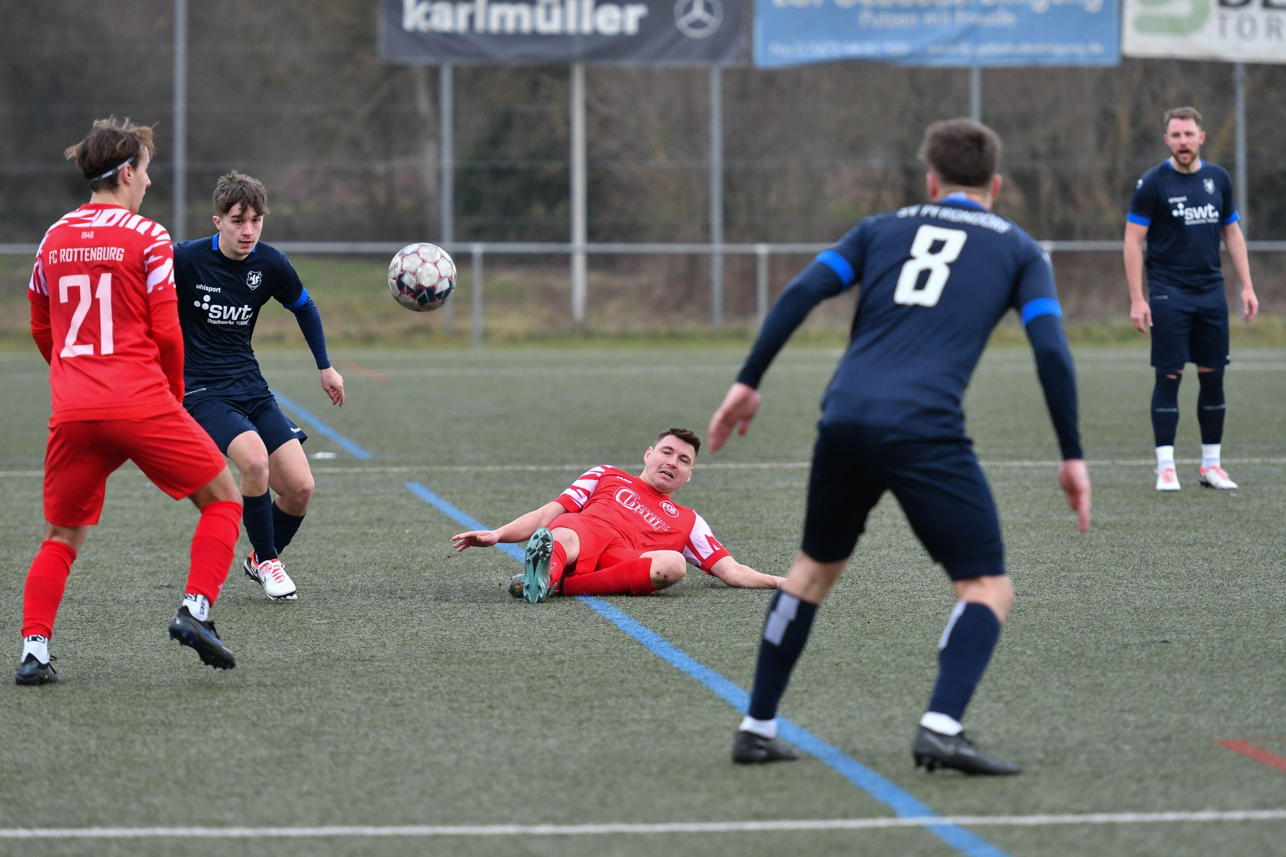 Bildergalerie Aktive Herren: FC Rottenburg – SV Pfrondorf 3:0 Herren 1. Mannschaft Saison 2023/24 Bezirksliga Alb Nachholspiel vom 10.12.2023, 17. Spieltag Sonntag, 18.02.2024 MERZ ARENA Rottenburg (Kunstrasenplatz) © Fotos von Ralph Kunze