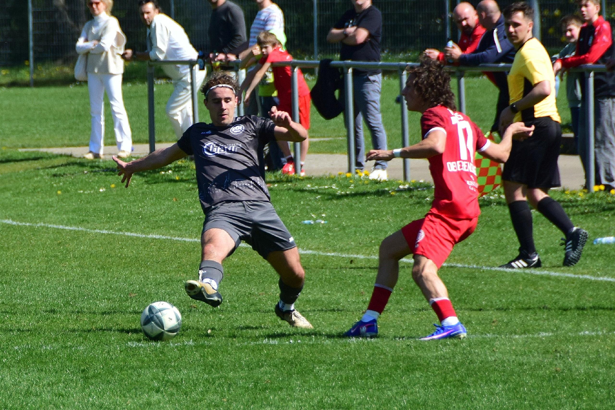 Neun Minuten darauf zog auch Oberensingen nach und brachte mit dem ehemaligen Profi Simon Brandstetter frischen Wind ins Spiel – unter anderem ersetzte er Torschütze Patrick Werner. Brandstetter hatte es dabei jedoch mit FCR-Abwehrchef René Hirschka zu tun, der sich über das gesamte Spiel hinweg als starker Rückhalt bewies.