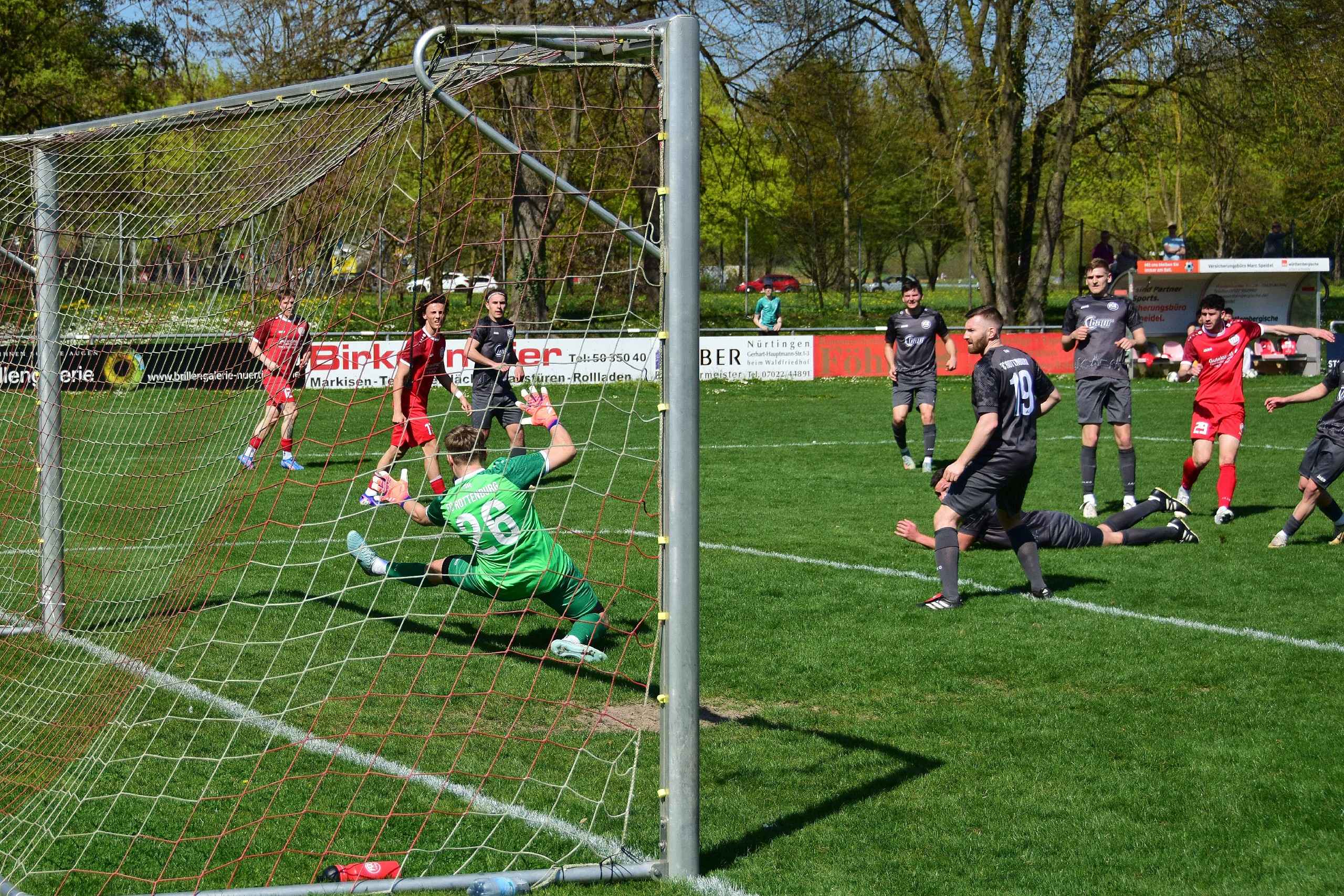 Dieses Tor öffnete die Tür für den Gastgeber noch weiter aufzudrehen. In der Folgephase erarbeiteten sich die Oberensinger gleich mehrere hochkarätige Chancen am Stück. So bewahrte Keeper Häfner sein Team in der 33. Minute mit einer starken Parade vor einem höheren Rückstand. Auch in der 35. Minute wurde ein klares Tor durch einen Stolperer eines Oberensingers verhindert, bevor Häfner beherzt eingriff.