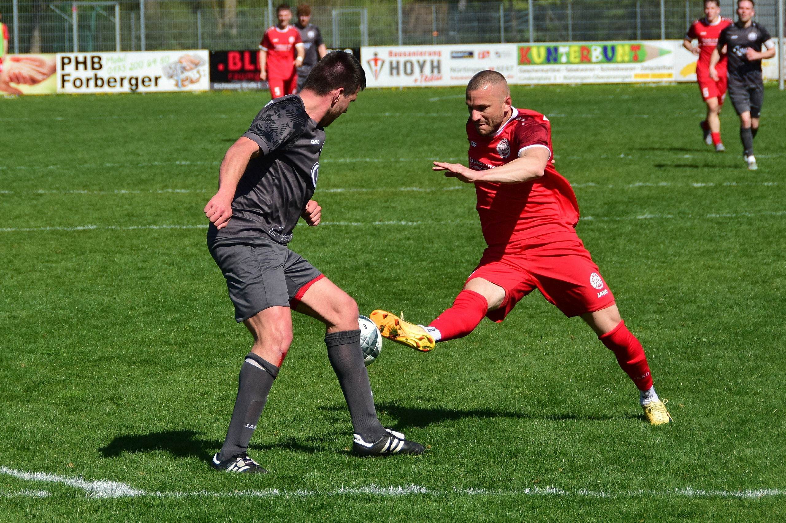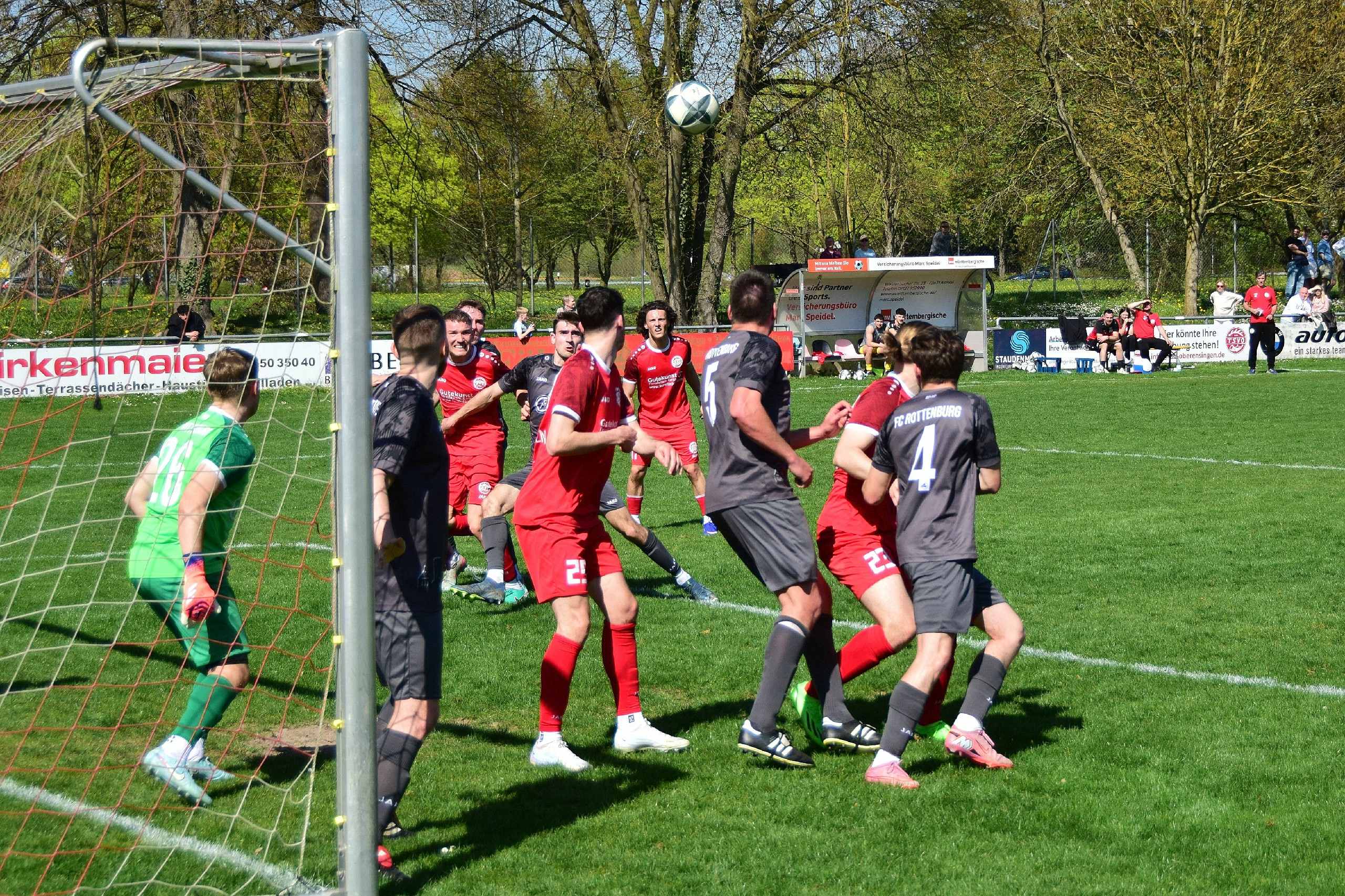Die erste Halbzeit begann mit einer klaren Marschroute der Gastgeber aus Oberensingen: Den Gästen vom FCR sollte kein Raum zur Entfaltung gegeben werden. Dieser Plan ging beeindruckend auf, denn bereits in der 2. Minute erspielte sich der TSV seinen ersten Standard. Ein Freistoß von der Strafraumgrenze auf der halblinken Seite führte zu einer brenzligen Situation, die FCR-Keeper Julian Häfner mit einer reaktionsschnellen Parade an die Latte lenken konnte. Diese frühe Aktion zeigte, dass die Defensive des FCR auf höchstem Niveau gefordert sein würde.