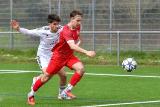 Nur drei Minuten später erhöhte Behr sein Torekonto auf beeindruckende 15 Treffer. Nach einem präzisen Zuspiel von Leon Oeschger über die linke Seite schloss Behr mit einem gekonnten Ausfallschritt am kurzen Pfosten zur 3:0-Führung ab, indem er zwischen Pfosten und Torwart traf – ein typischer Moment für einen echten Torjäger, wie Behr ihn mittlerweile verkörpert. Seine herausragende Saison erlebt damit einen weiteren Höhepunkt. Der Schiedsrichter legte noch zwei zusätzliche Minuten Nachspielzeit obendrauf, ehe die Halbzeitpause eingeläutet wurde.
