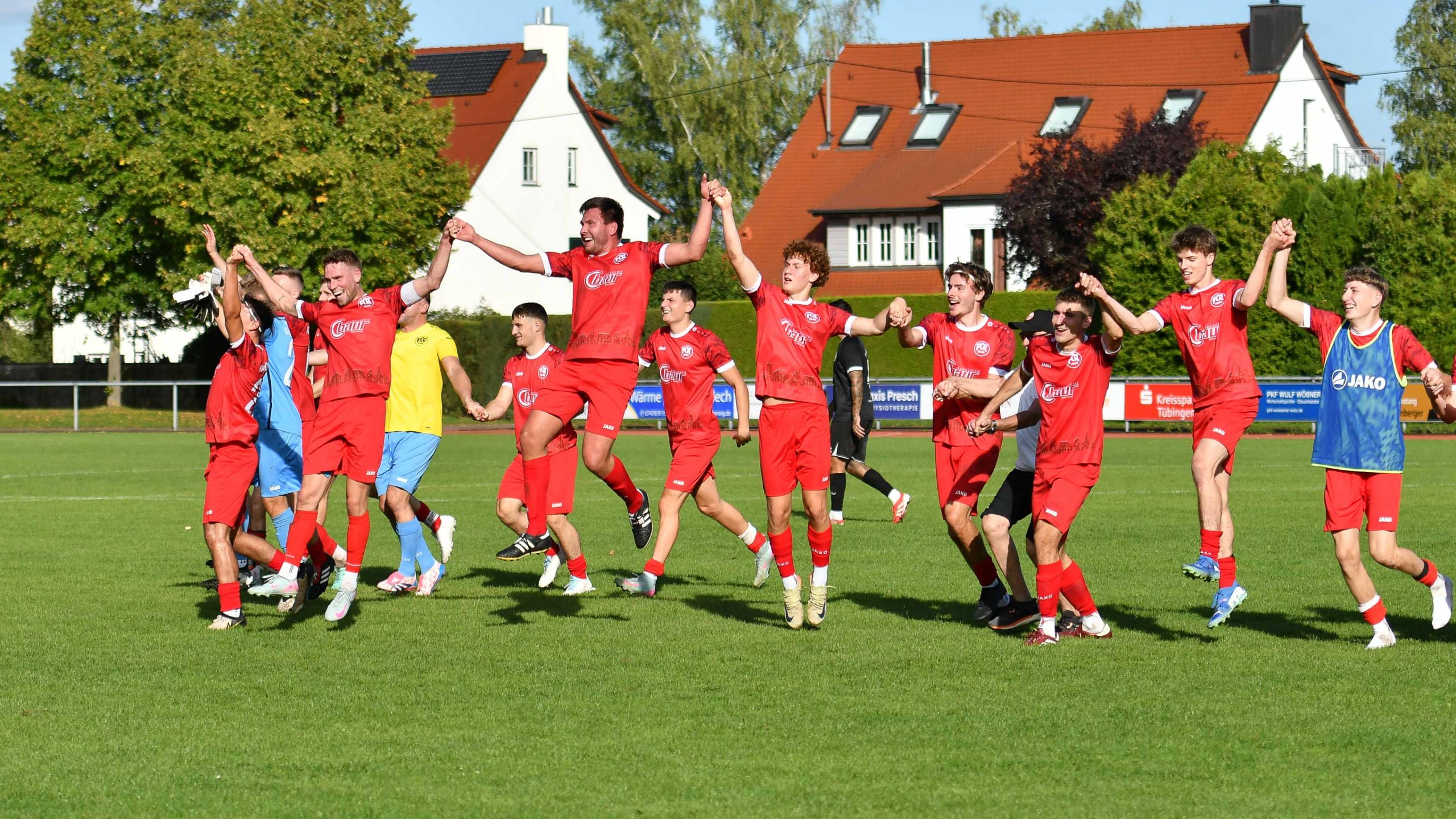 Die Mannschaft freut sich hier nach dem ersten Auswärtssieg beim SV Fellbach eine Woche zuvor, über ihren ersten Verbandsliga-Heimsieg der Geschichte und das gegen den Ex-Zweitligisten VfR Heilbronn und bedankt sich bei seinen zahlreichen Fans. Ein weiterer historischer Meilenstein des FC Rottenburg.